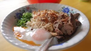 Pakar Jual Bubur Ayam dengan kontras tekstur |