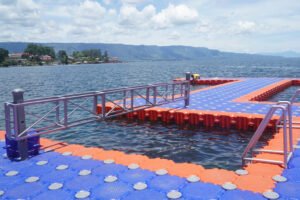 Penggunaan Kubus Apung dalam pembangunan Dermaga Apung memberikan kemudahan akses bagi aktivitas transportasi air. Dermaga dengan sistem terapung mampu menyesuaikan ketinggian permukaan air secara alami sehingga tetap nyaman digunakan saat pasang maupun surut. Dermaga Apung berbasis Kubus Apung juga memiliki tampilan rapi dan profesional, menjadikannya pilihan populer untuk marina, resort, dan kawasan wisata air yang mengutamakan estetika dan keamanan.